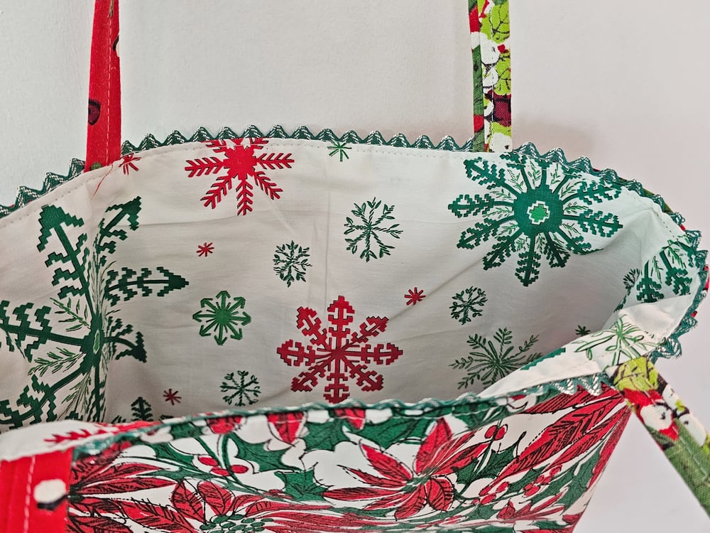 Each tote is fully lined and interfaced for sturdiness. Machine washable.