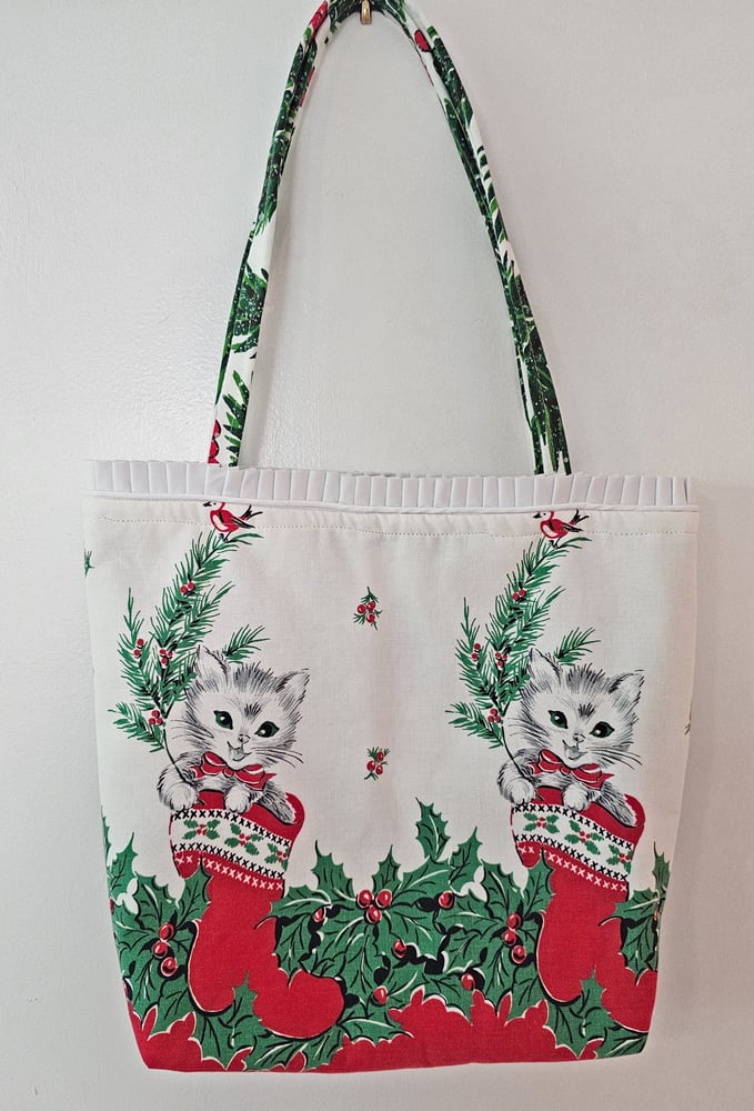 Kittens in Stockings Christmas Fabric Holiday Tote #2