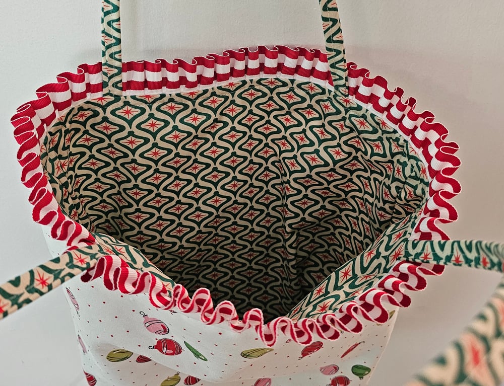 Each tote is fully lined and interfaced for sturdiness. Machine washable.