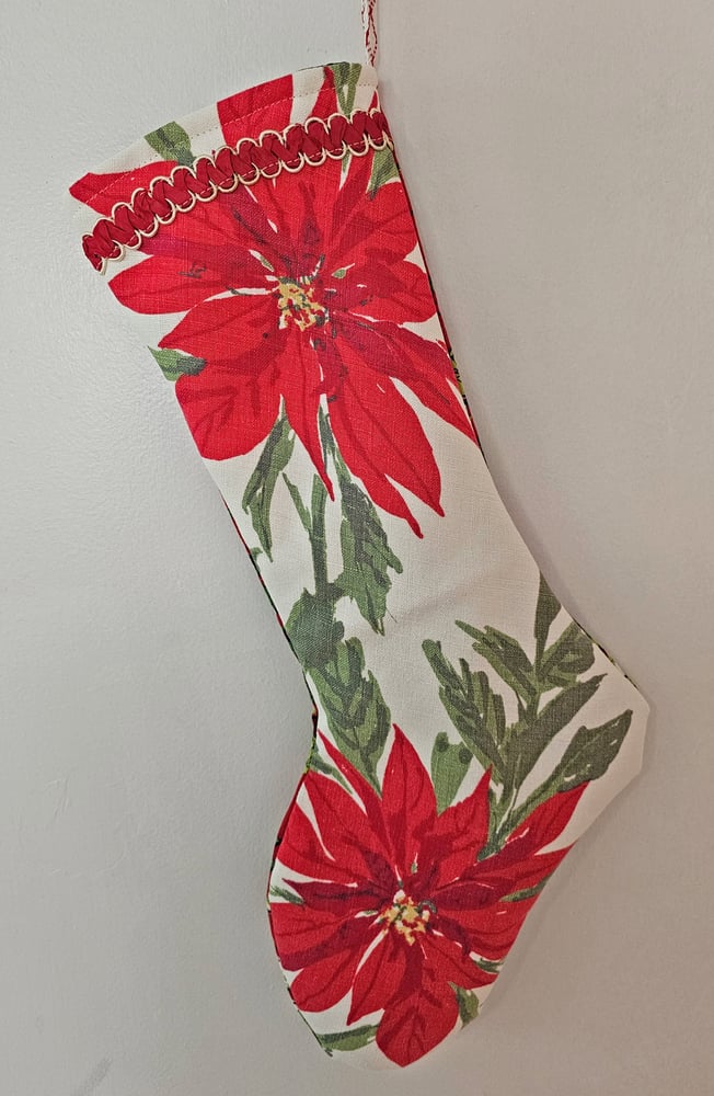 Vintage Vera Poinsettia Fabric Christmas Stocking